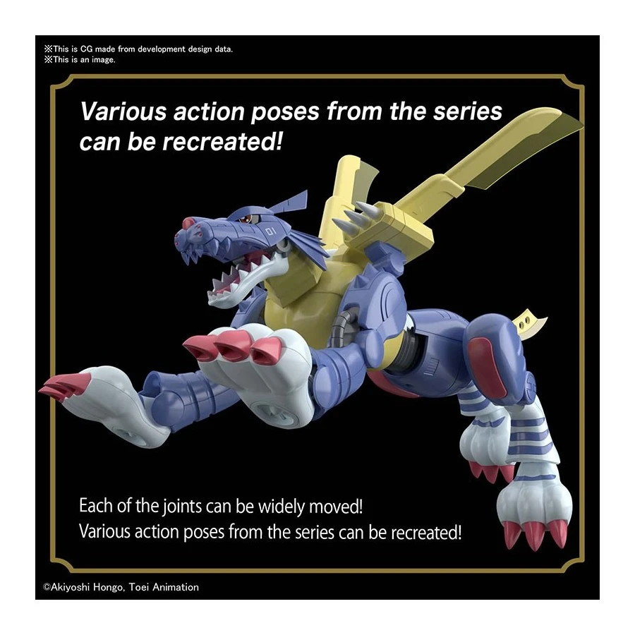 Metal Garurumon tratto da Digimon entra nella line-up Figure-Rise, azione completa una volta assemblato. Model Kit a scatto, stampato a colori che non necessita di vernice o colla per completarlo.