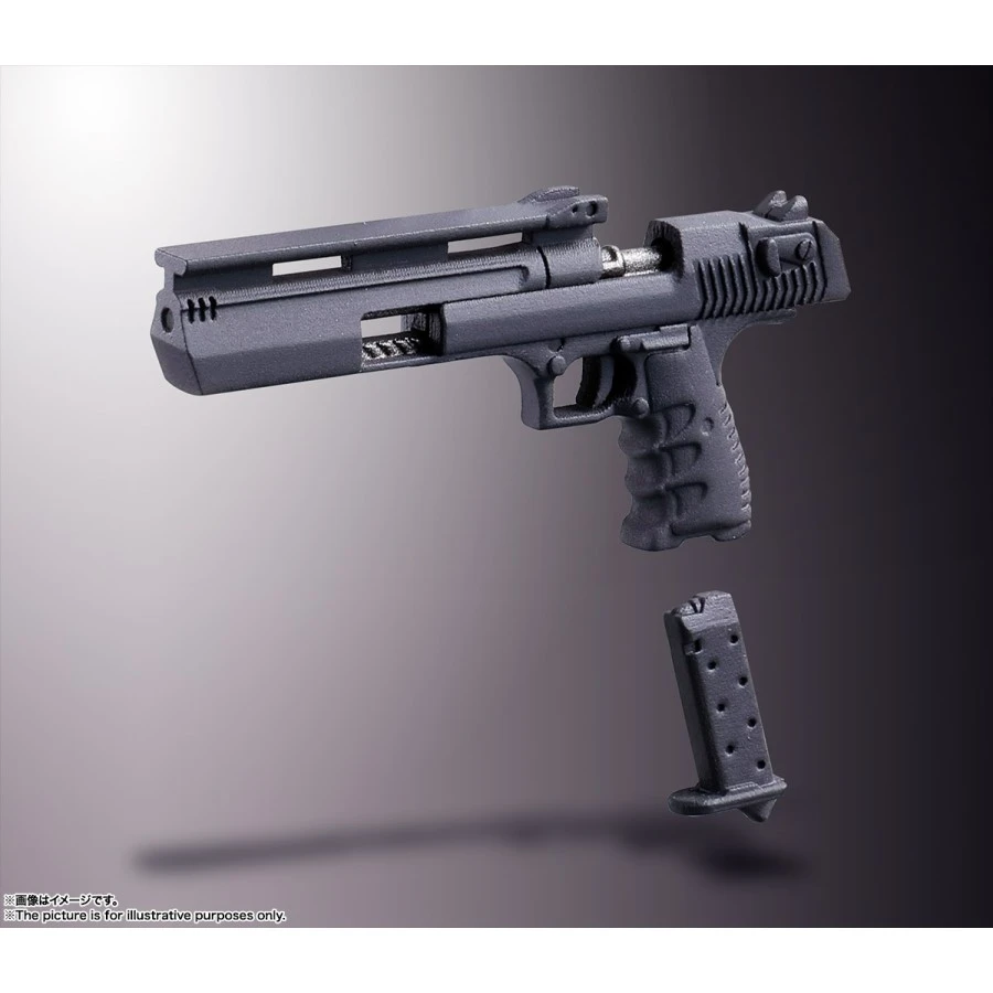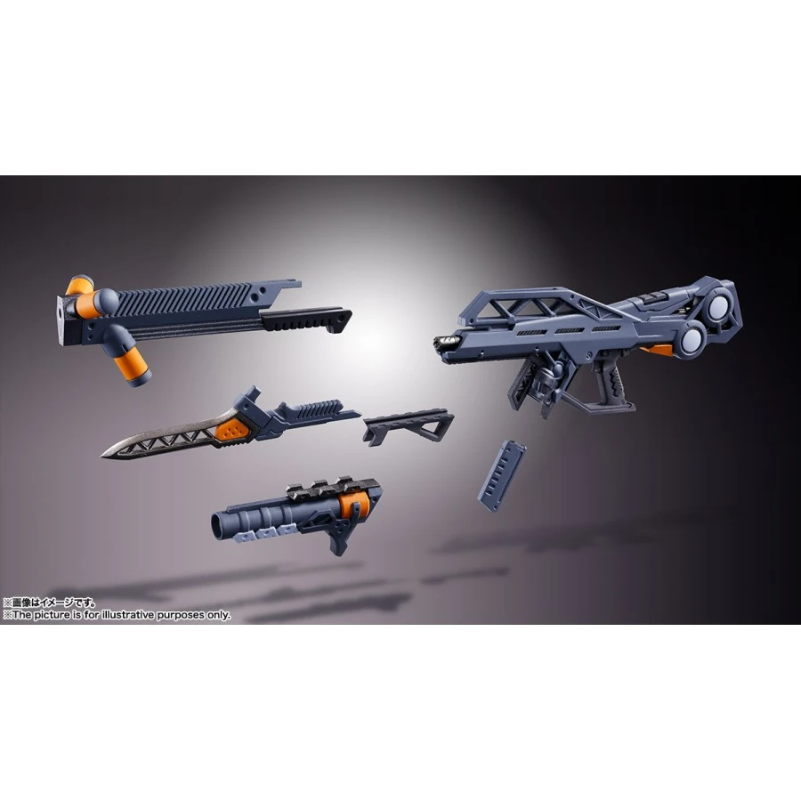 Viene fornito con, 8 mani intercambiabili, Progressive Knife, Exterminator Sword, Counter Sword, Pallet Rifle, Handgun e Umbilical Cable.