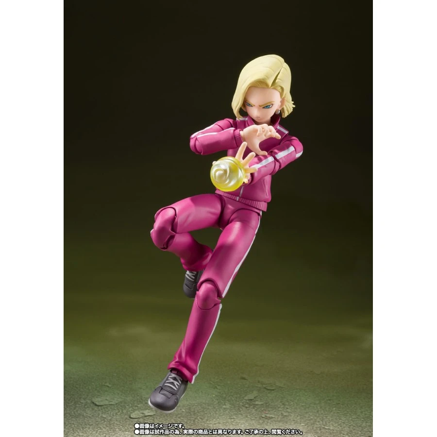 C18 tratta da Dragon Ball Super entra nella line-up Bandai S.H. Figuarts, azione completa, alta 13.5cm. Viene fornita con 10 mani intercambiabili, 3 volti intercambiabili, parti dei capelli intercambiabili e parti d’effetto Energy Bullet.