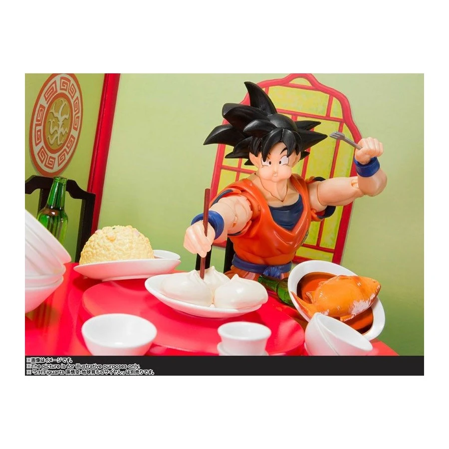 Son Goku’s Eating Moderately Set tratto da Dragon Ball Z entra nela line-up Bandai S.H. Figuarts. Viene fornito con sfondo, mobili, stoviglie, cibo e volti alternativi per la Bandai S.H. Figuarts Son Goku Saiyan Grown on Earth.