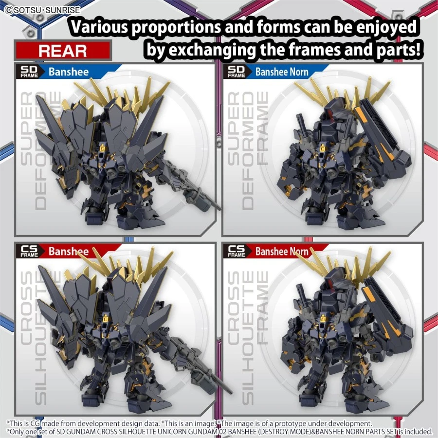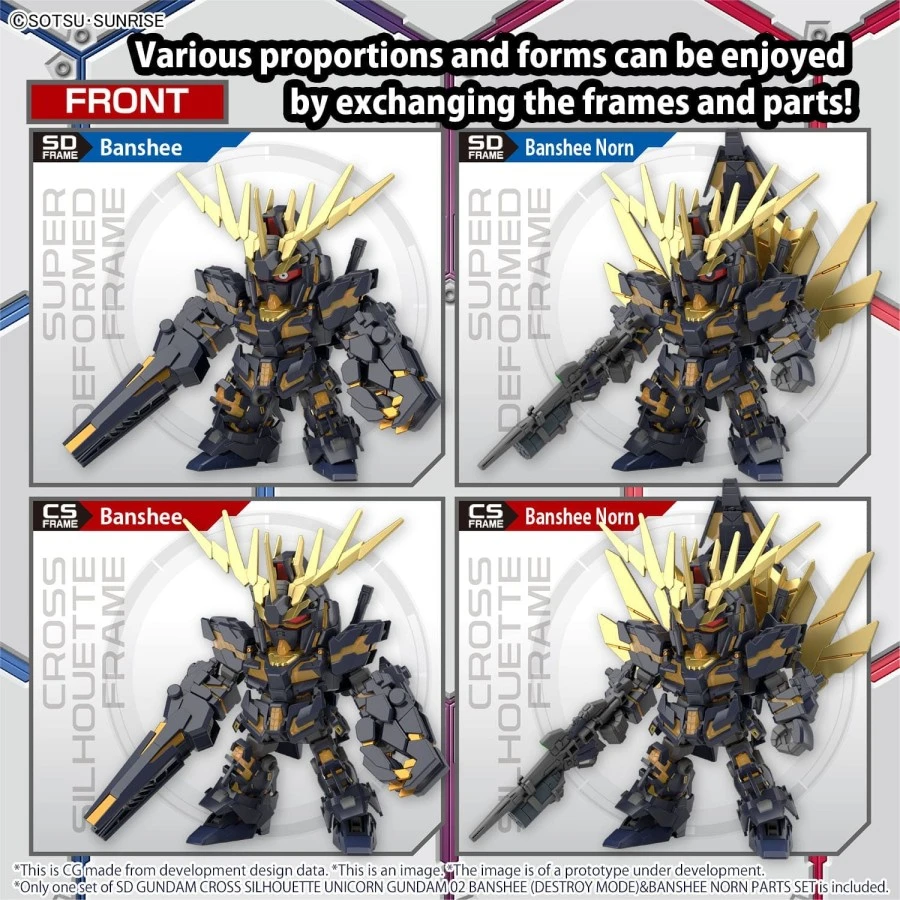 Bandai SD Gundam Cross Silhouette Unicorn Gundam 2 Banshee Destroy Mode & Banshee Norn Parts Set