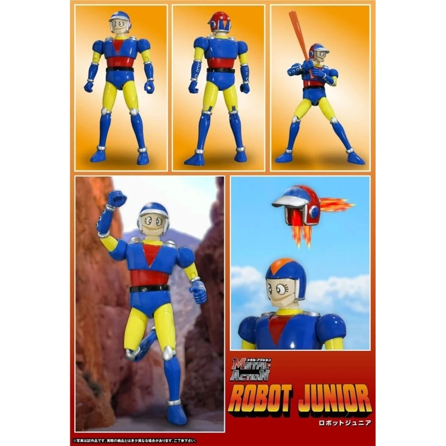 Robot Junior tratto da Il Grande Mazinga entra nella line-up Evolution Toy Metal Action, azione completa alto 15cm. Realizzato in ABS, PVC e metallo die-cast. Viene fornito con mani intercambiabili e armi.