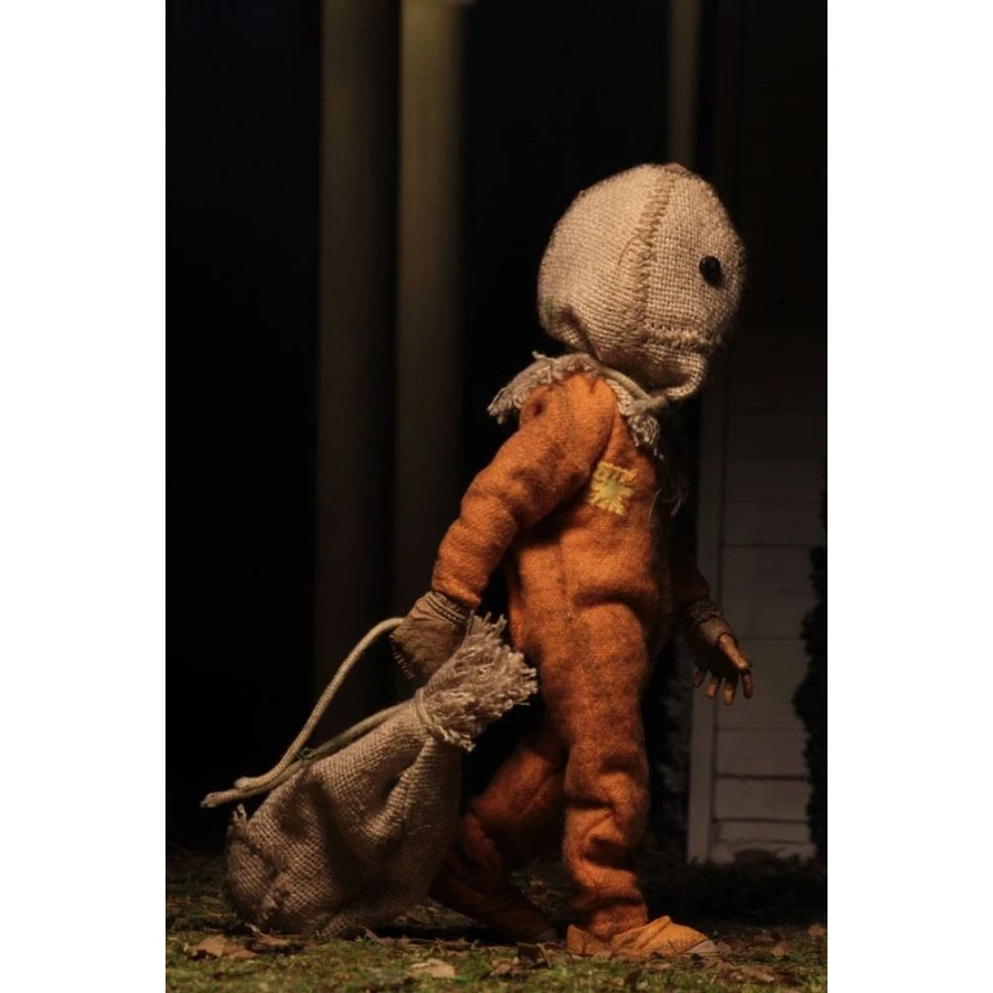 In scala con le altre figure vestite da13cm di NECA, Sam è vestito con il suo pigiama a piedi dotato di un sacco di tela rimovibile che rivela la sua testa non mascherata con l’articolazione della mascella. Pronto per la notte di Halloween, Sam include anche un sacco per dolcetto o scherzetto e lecca-lecca. Viene fornito in una confezione a conchiglia con grafica personalizzata realizzata solo per questa versione.
